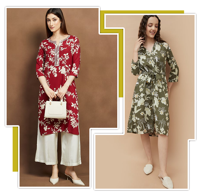 MELANGE Floral Print Straight Kurta